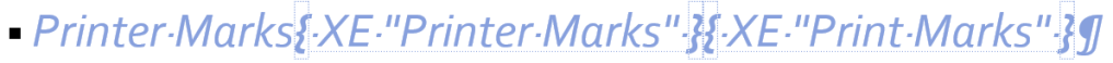 If you have a massive document, like say a book, which needs an appendix for readers to easily look up sections or references other than chapter headings, you will need to point the program to those references. The computer doesn’t figure it out on its own… yet. Those entries are called Index Entries and only appear with squiggly brackets when Show/Hide is toggled to Show.