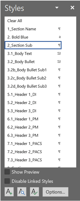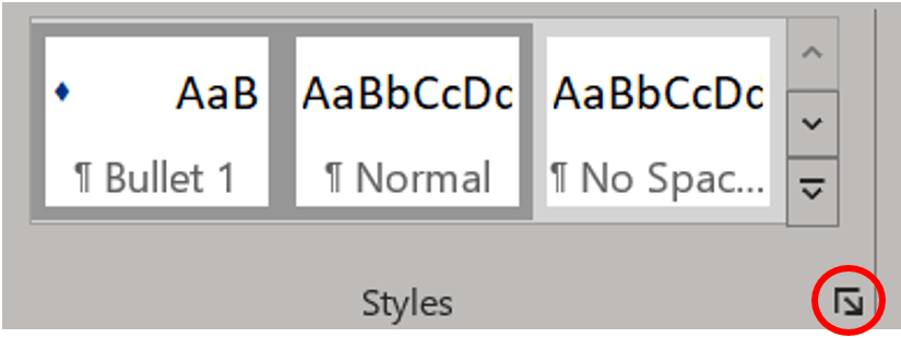 Character and Paragraph styles determine the look of most of the text in a document. Some styles work as both character and paragraph types, and these styles are known as linked styles. Paragraph styles are the most common styles you’ll see. All of these styles appear on the Home ribbon in the Style Gallery. To see ones not in the gallery, click the Styles Dialog Box Launcher.