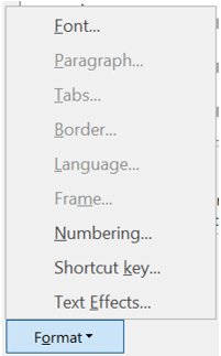 The Format drop-down menu allows you to make further modifications such as those shown below. Many of the options will be grayed out.