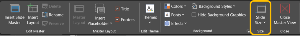 This will open the Slide Master tab, where under the Size group, open the dropdown for Slide Size.