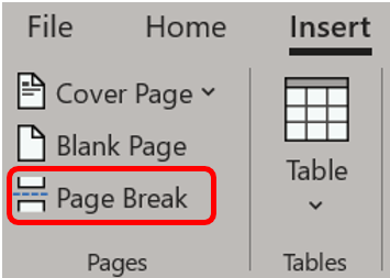 1. From the Insert ribbon in the Pages group, select Page Break.