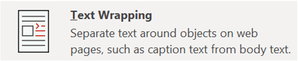 You’ve seen text wrap around an image. Obviously. You’re looking at it now. But say your text doesn’t reach the bottom of the image and you don’t want to start the next paragraph with only one line. You could hit return and have that extra paragraph break floating in your document or you could select the text beside the picture and choose this Text Wrapping option. This will allow you to keep the selected text together with consistent formatting and will flow the rest of the document around this section.