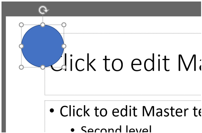 On the master slide insert a circle as we don’t have a real logo. You could instead insert an image. Head to the Insert ribbon, go to the Illustrations group, and open the dropdown for Shapes then choose the Oval. Click once for a perfect circle.