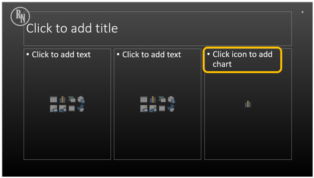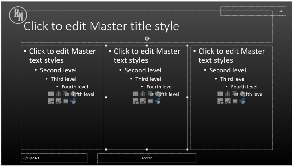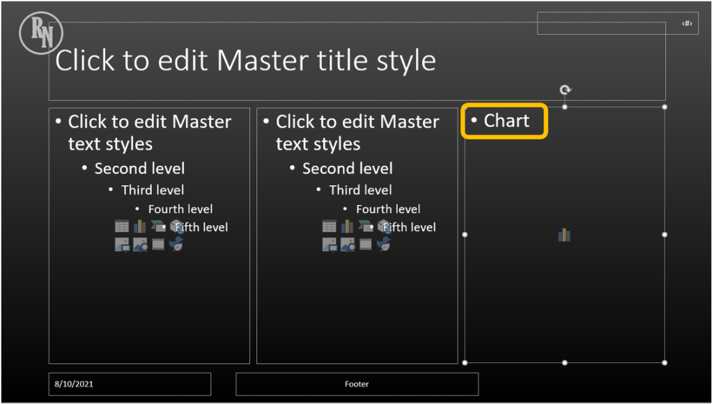 We created a new layout in the previous post, now let’s edit it. Since this is going to have three items, first reduce the size of the two current placeholders by selecting and reducing the size as you would with a shape, image, or text box.