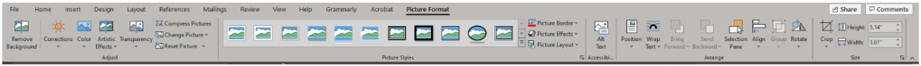 For this section, you will frequently use the Picture Format tab, which only appears when you click on an image. If you do not see the Picture Format tab, you have not selected an image.