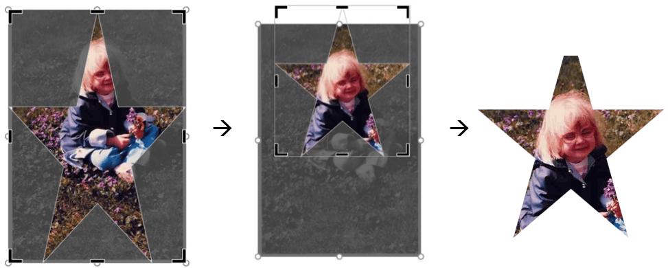 To adjust, click the image again and click the top part of the Crop button. The original will display. You can now adjust the handles and/or move the image within the shape.