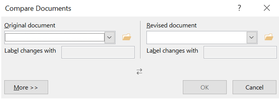 The Compare Documents dialog box will appear.