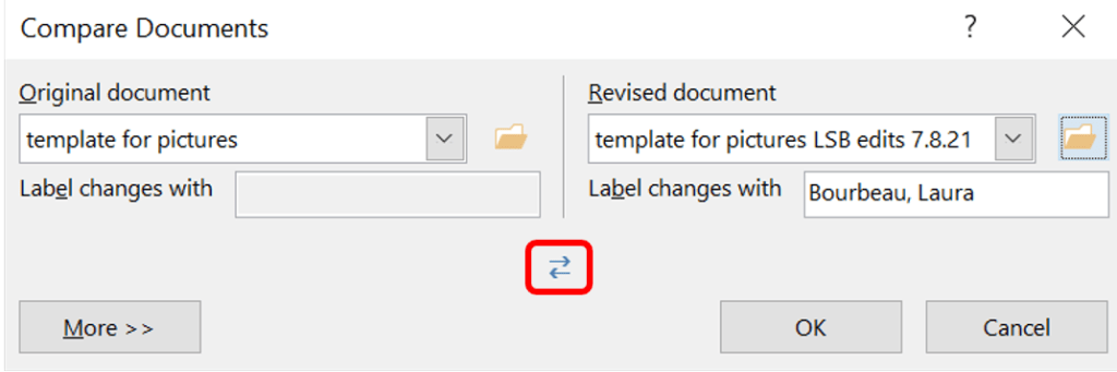 If you messed up, and you want to reverse how you want the documents to be compared click the swap button.
